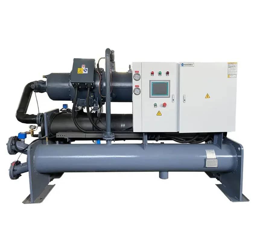 چیلر آب‌خنک (Water-Cooled Chiller) نوعی سیستم خنک‌کننده است که از سیکل تبرید تراکمی برای تولید آب سرد یا خنک‌سازی محیط استفاده می‌کند. در این نوع چیلر، گرمای جذب‌شده از محیط یا فرآیند توسط کندانسور آب‌خنک به آب منتقل شده و سپس این گرما معمولاً از طریق برج خنک‌کننده به محیط دفع می‌شود.
